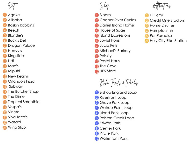 Holy City Bikes, Postal Haus and The Daniel Island Ferry are partnering to bring you this map and bike trails of Daniel Island, South Carolina, a beautiful semi-hidden coastal community that offers scenic bike trails and waterfront views.